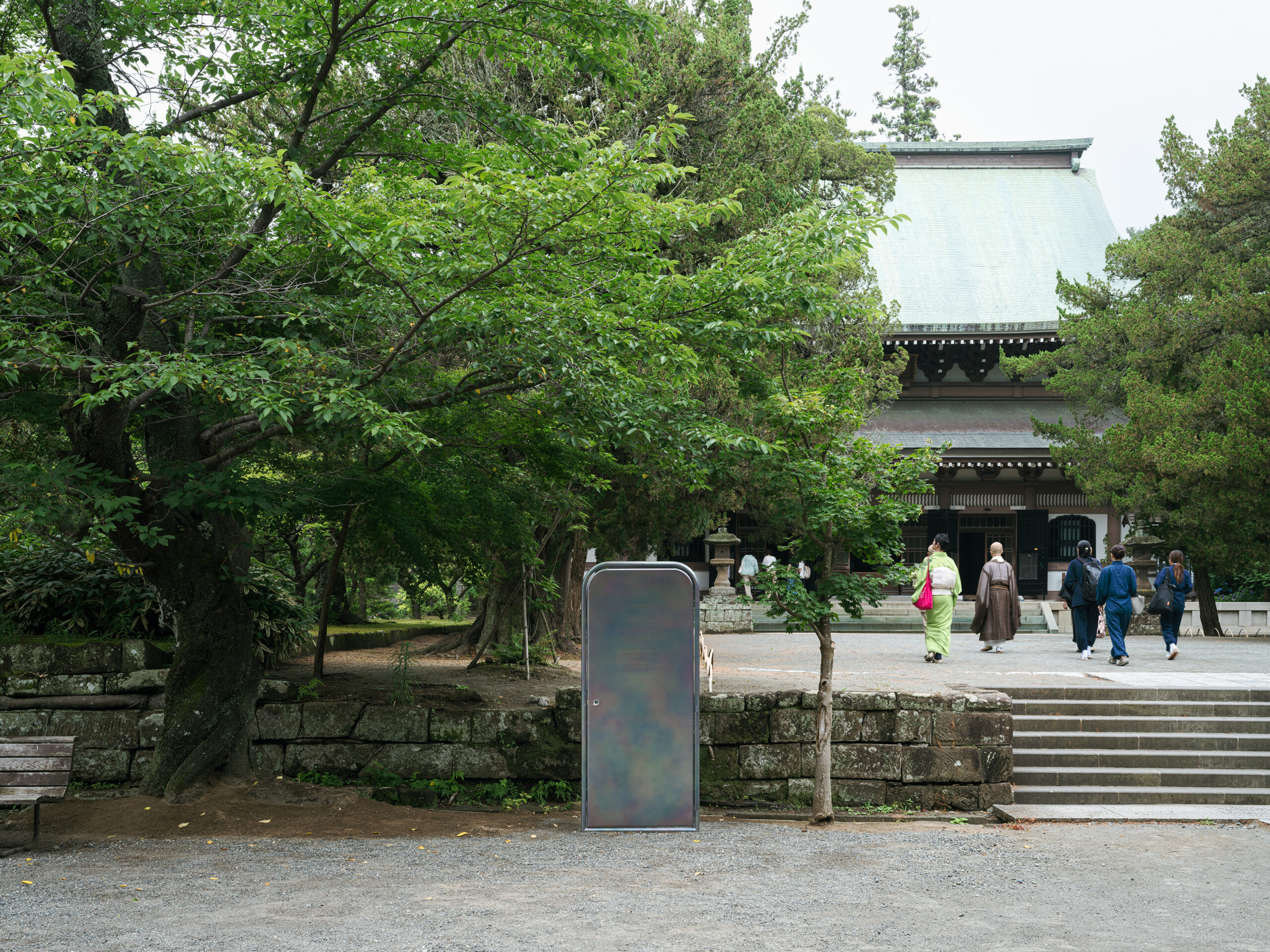 古都鎌倉に佇む、臨済宗円覚寺派の本山「円覚寺」。1282年に開創された禅寺である円覚寺は、《Anywhere Door》の着想を得た特別な場所でもあります。 今回、円覚寺の境内にて、象徴的な大きな山門のある広場での展示が実現しました。歴史深い空間に突如現れる《Anywhere Door》。 《Anywhere Door》のテーマである日本の歴史や伝統と、現代的なPOP カルチャーの交差点、を体現した展示になっています。その佇まいが生み出す、神秘的でゆるやかな境界の表現をぜひ体験してください。