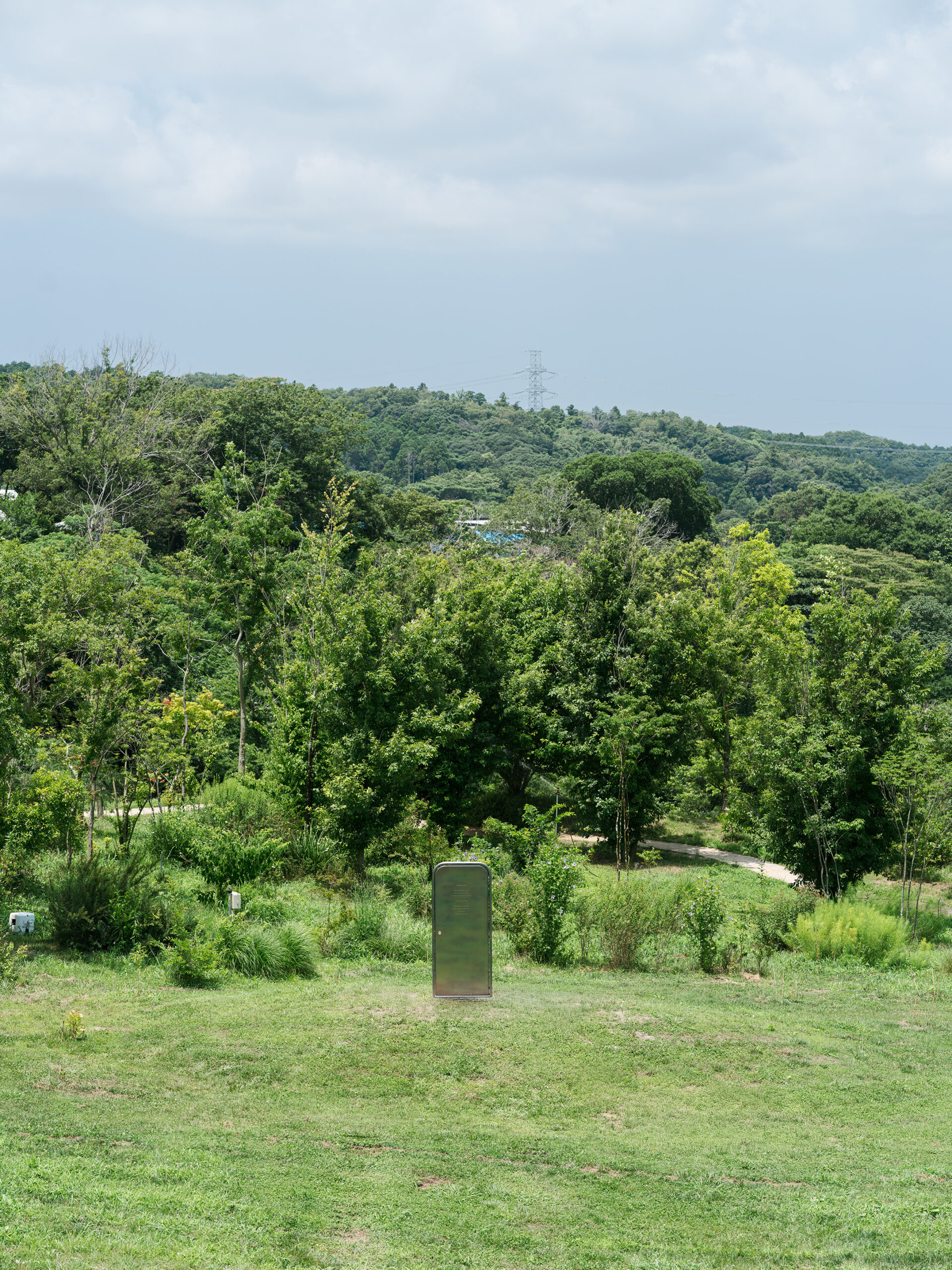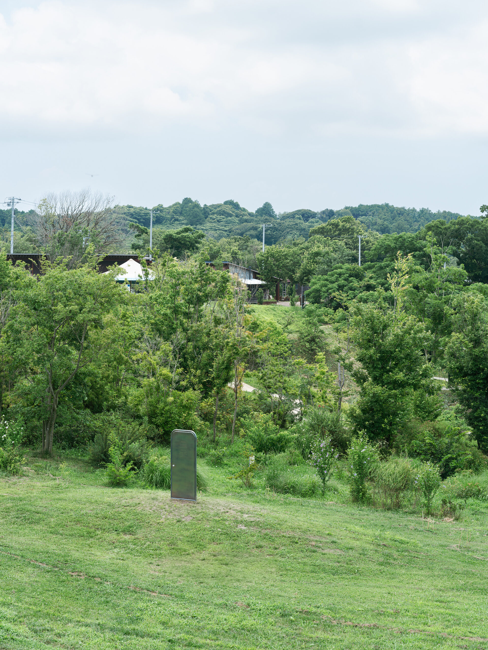 *fig.21-26《Anywhere Door》木更津・KURKKU FIELDS での写真。常設作品として園内に展示されることになった。鉄筋コンクリート基礎をつくり設置された。作品への近づきやすさや園内での見え方も考慮された。背後には緑が生い茂る。