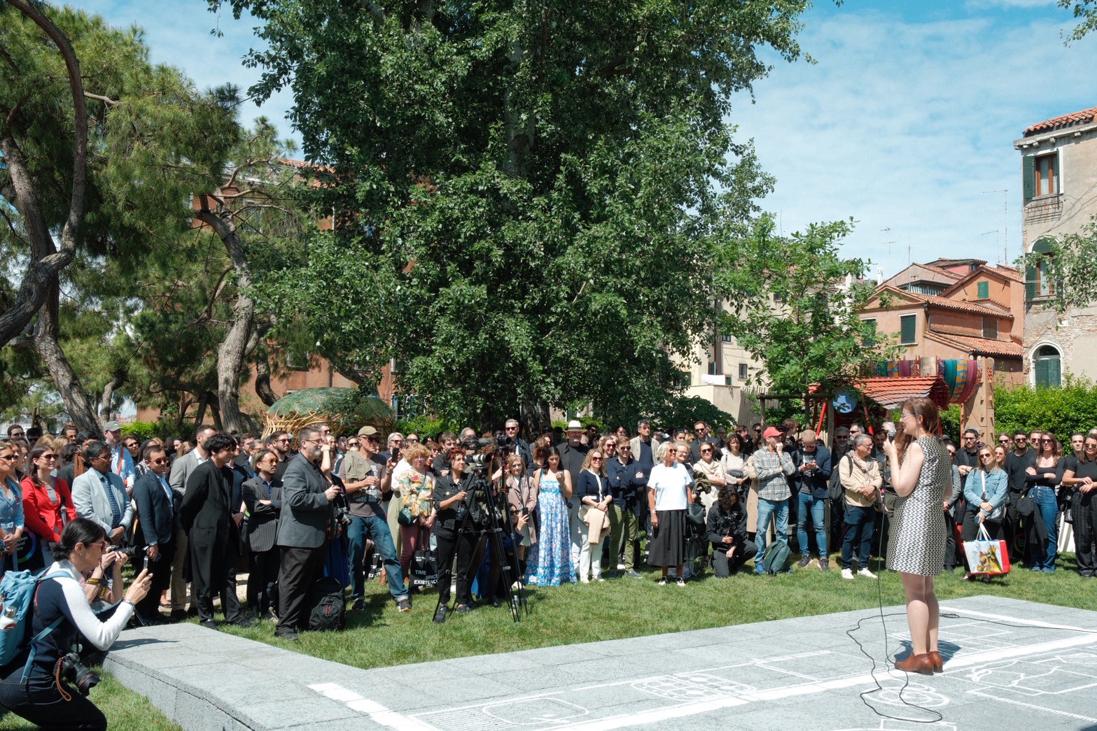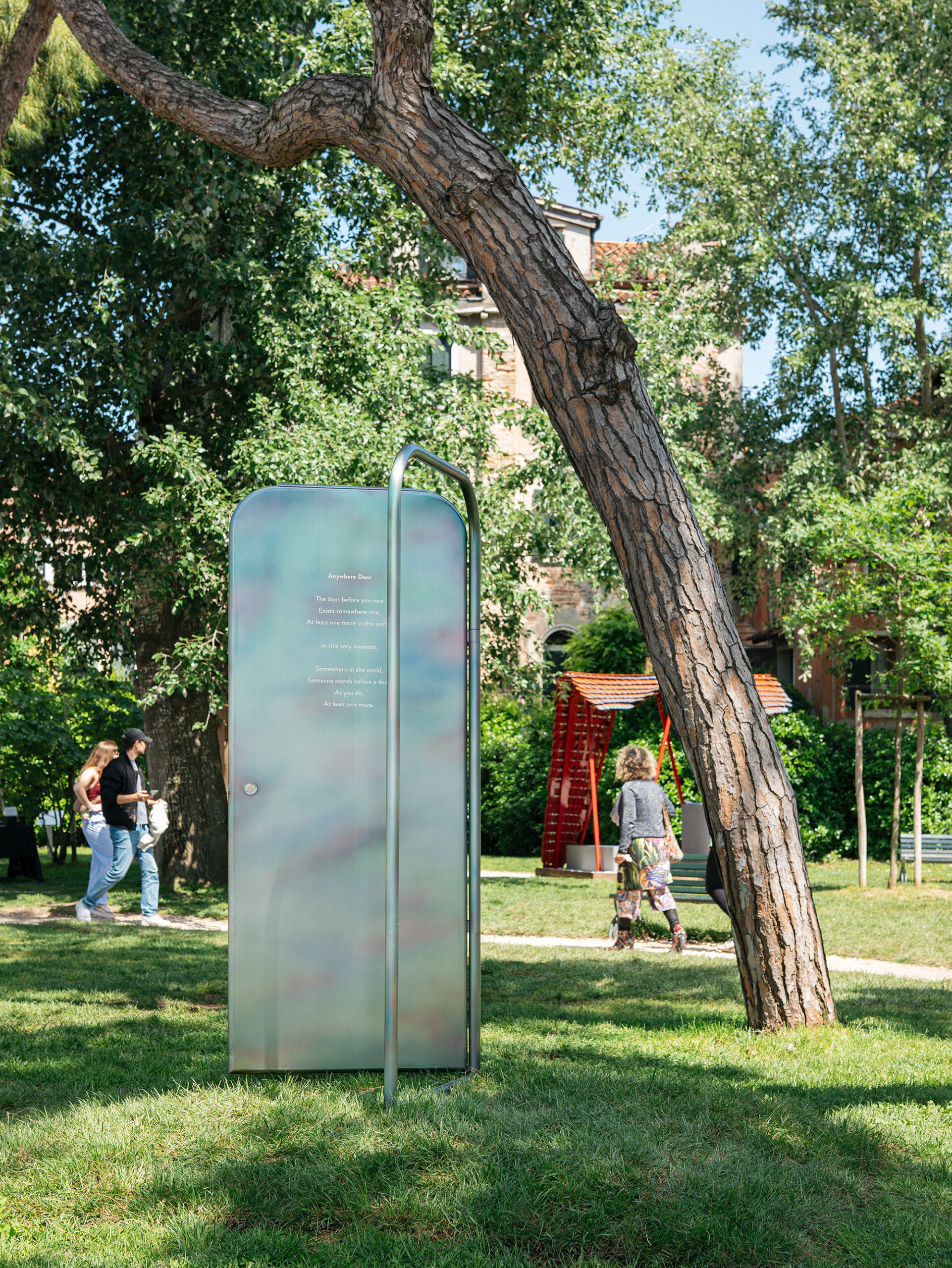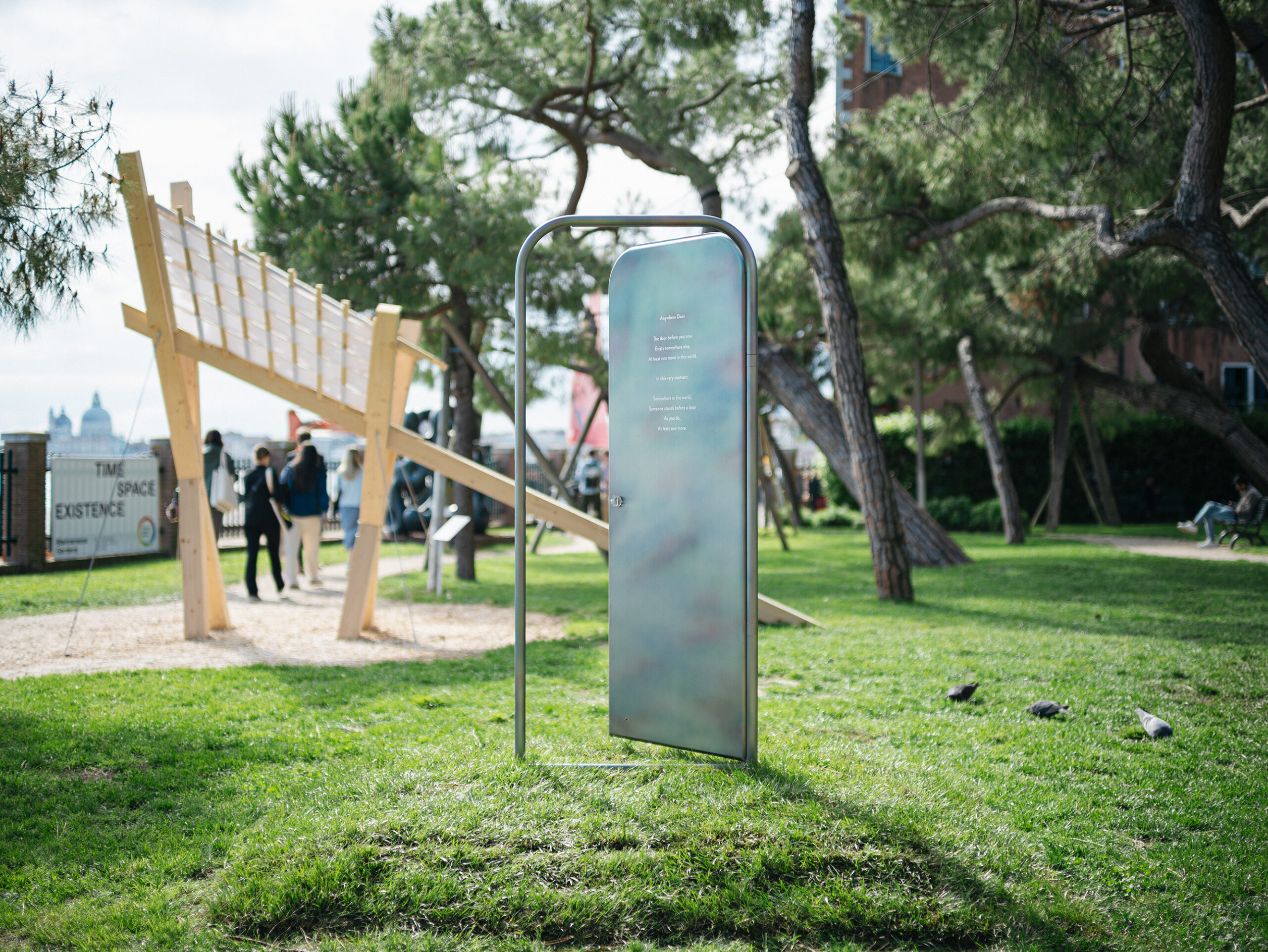 *fig.07 《Anywhere Door》イタリア・ヴェネチアでの写真。 ヴェネチア・ビエンナーレ国際建築展期間中に開催される European Cultural Centre 主催の Time Space Existence 公式招聘作品としてマリナレッサ庭園にて発表。