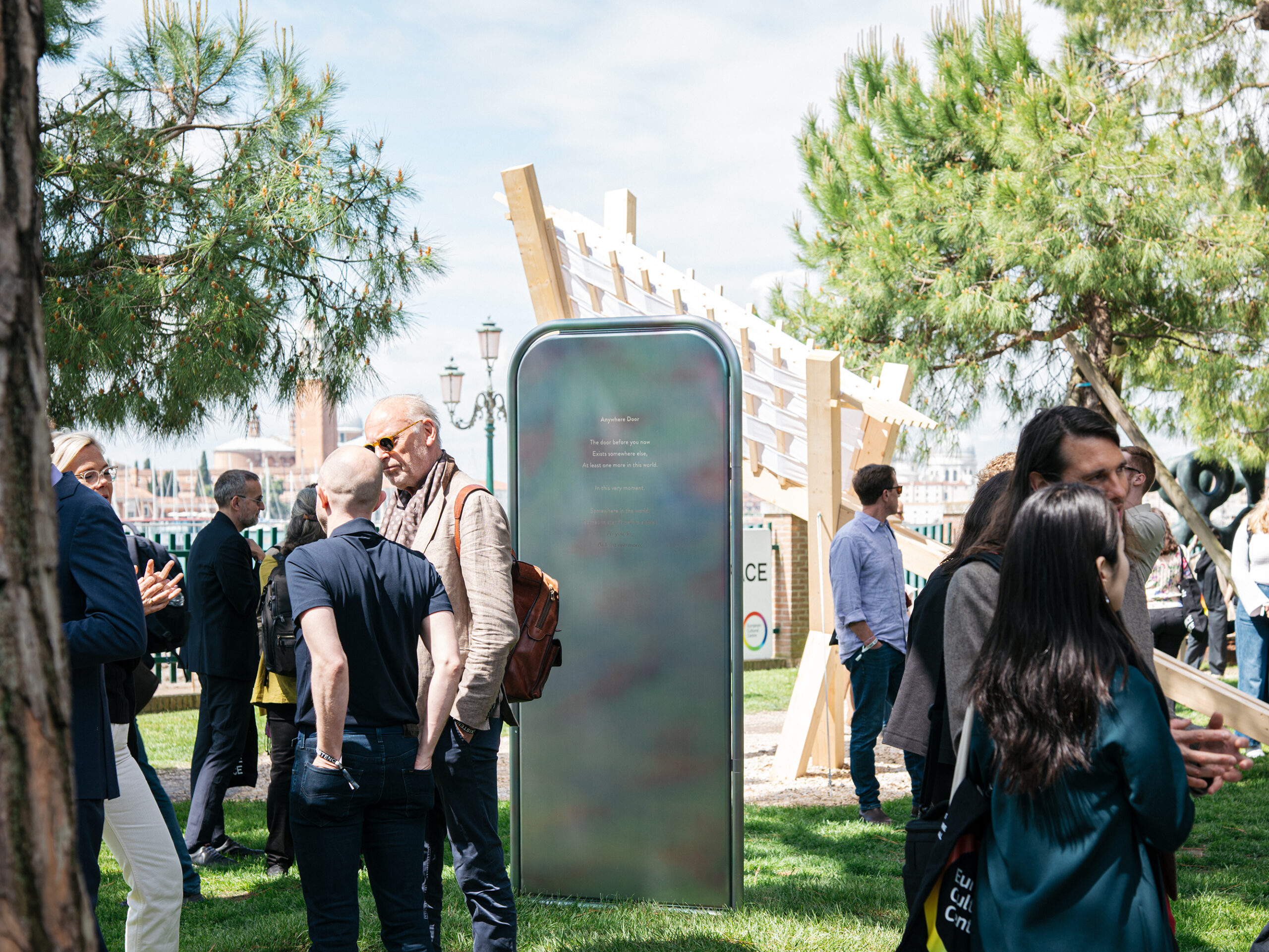 ヴェネチア・ビエンナーレ国際建築展期間中に開催されるEuropean Cultural Centre 主催Time Space Existence の 公式招聘作品として、《Anywhere Door》は屋外会場であるマリナレッサ庭園(Marinaressa Gardens)に出展/ 展 示されています。 「Urgency to Repair, Regenerate, and Reuse」をテーマに掲げた2025 年度のTime Space Existence の会場には、2025 年5 月10 日(土)から2025 年11 月23 日(日)までの198 日間、世界各国から招 聘された建築家の作品やパネルが並びます。 その中で、日本人建築家として、日本の文化と職人の誇るクラフ トマンシップを立体作品を通して伝えます。世界の名だたる出展作品と並ぶ《Anywhere Door》。その存在感と日 本文化が織りなす表現を現地ヴェネチアでぜひご体感ください。